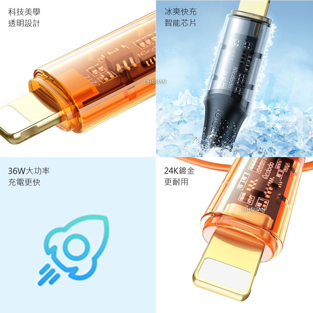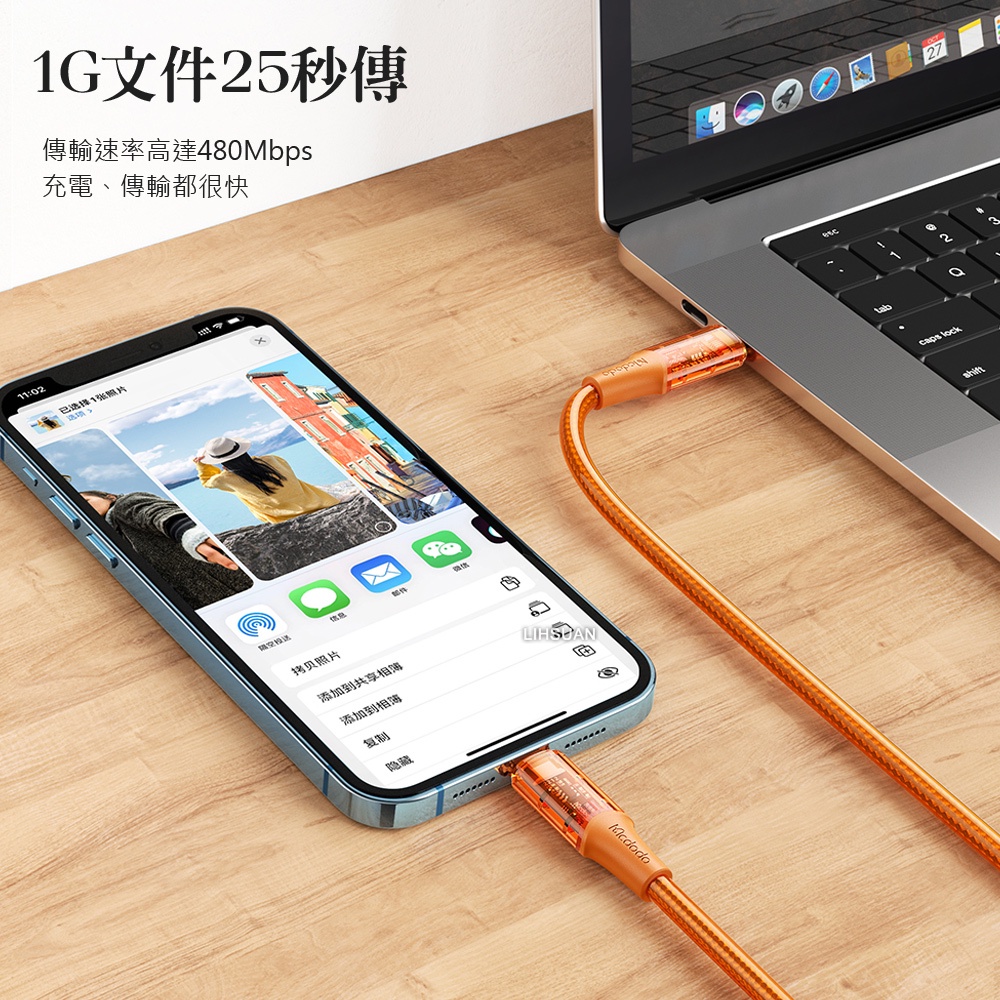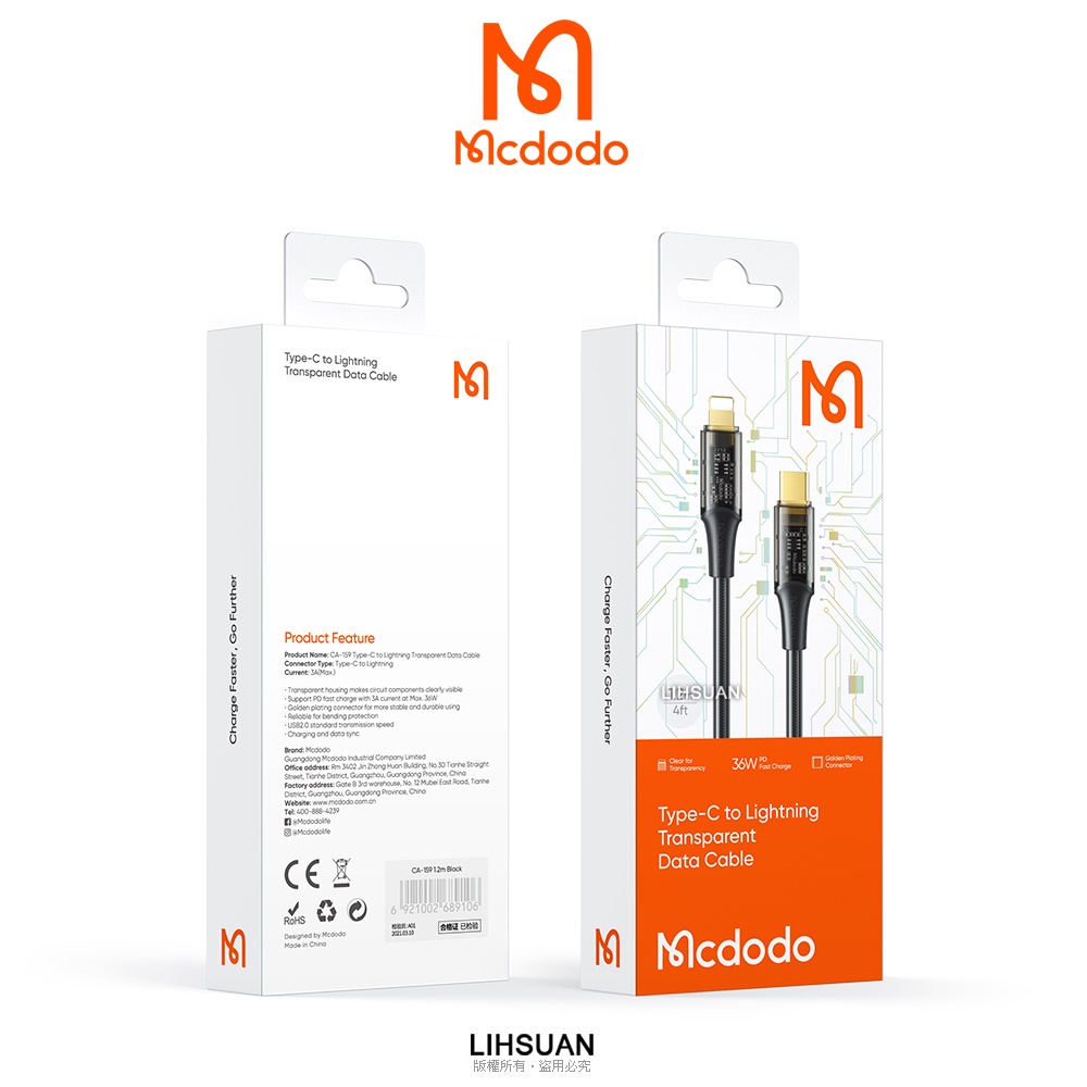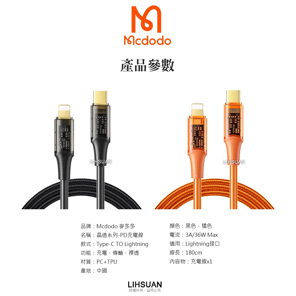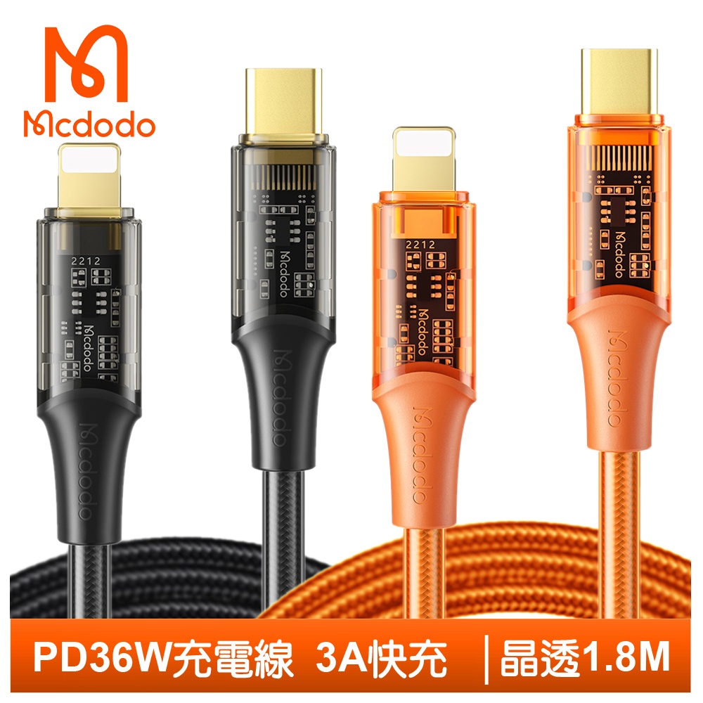 Mcdodo Lightning/Type-C/iPhone/PD充電線傳輸線快充線 晶透 1.8M 麥多多