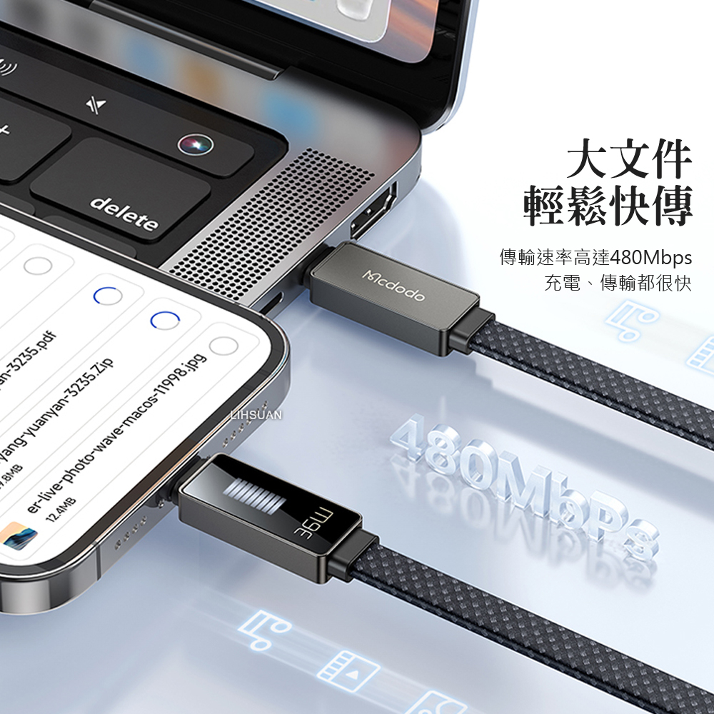 Mcdodo Lightning/TypeC/iPhone/PD充電線傳輸線 36W快充 跑馬燈 律能 1.2M 麥多多