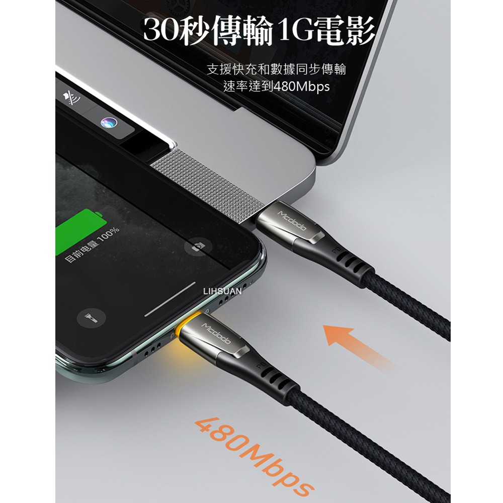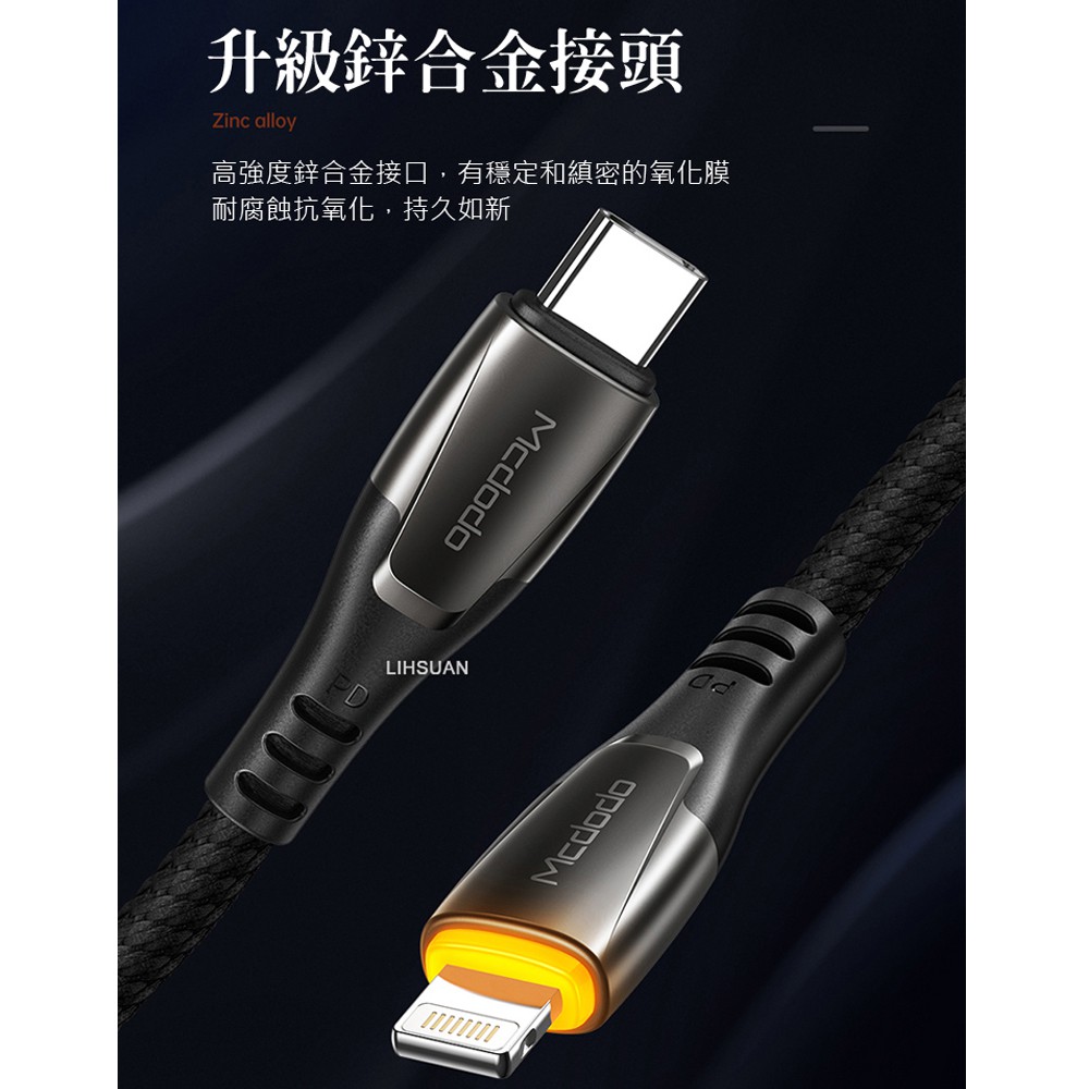 Mcdodo PD/Lightning/Type-C/iPhone充電線快充線傳輸線 LED 保時系列 120cm