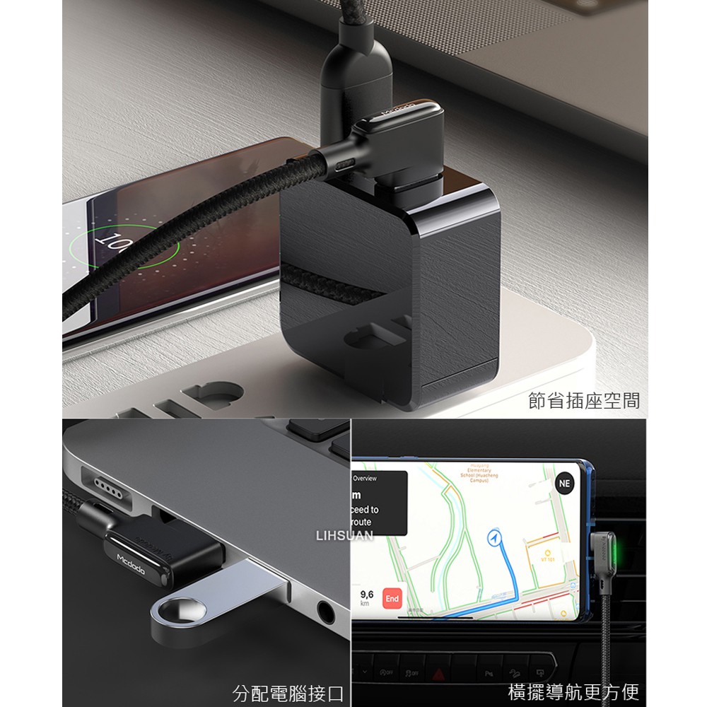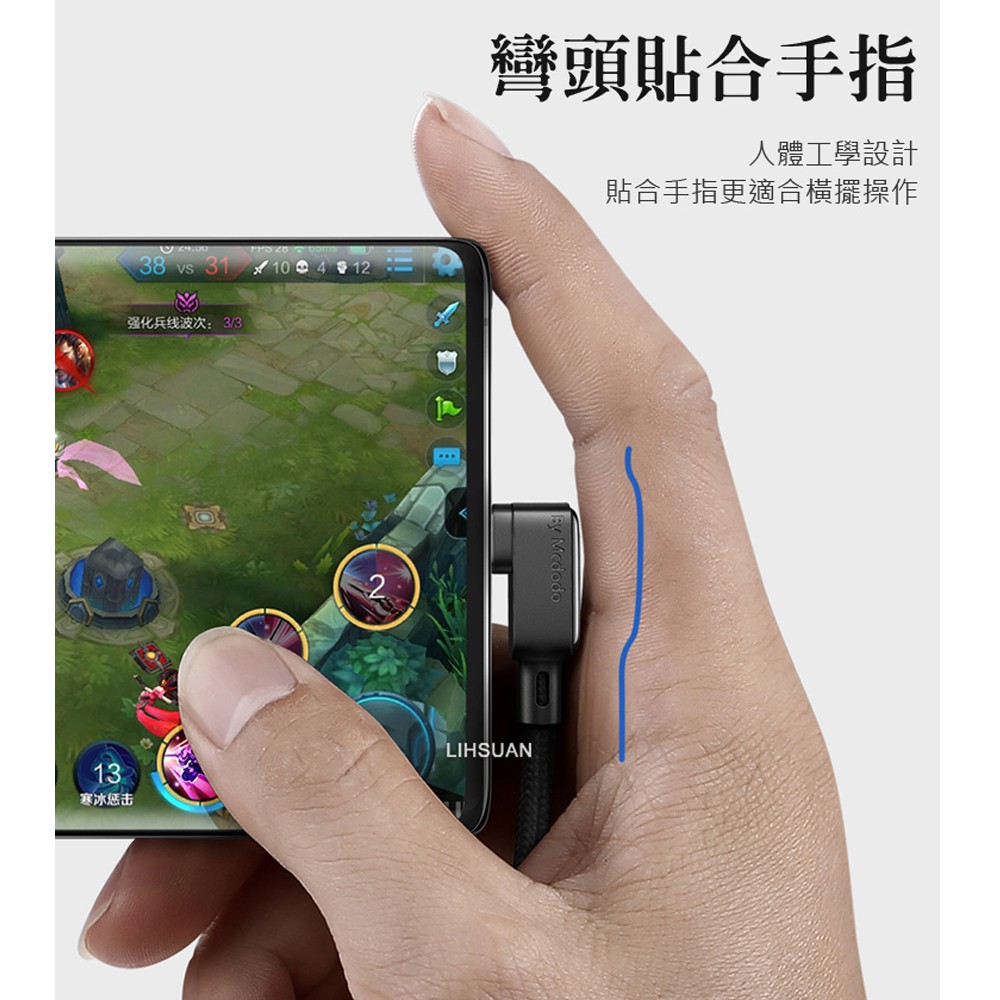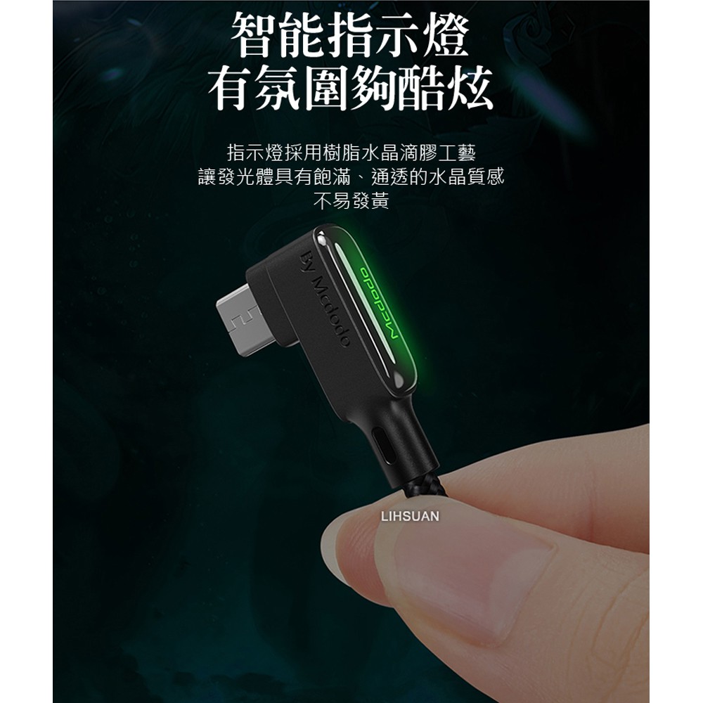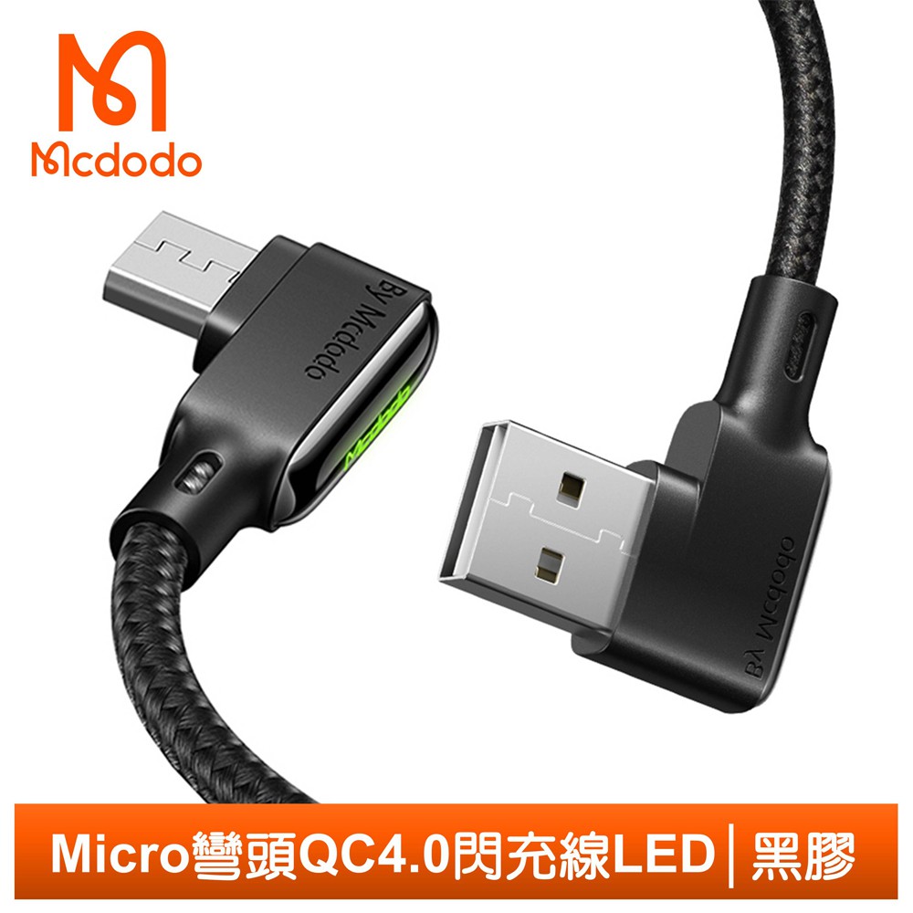 Mcdodo 安卓MicroUSB充電線閃充線傳輸線 彎頭 QC4.0 LED 黑膠系列 180cm 麥多多