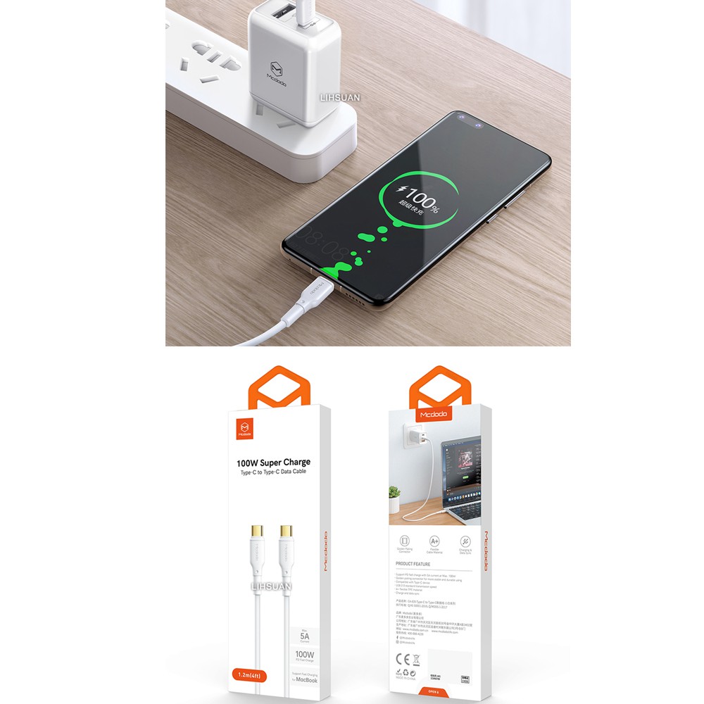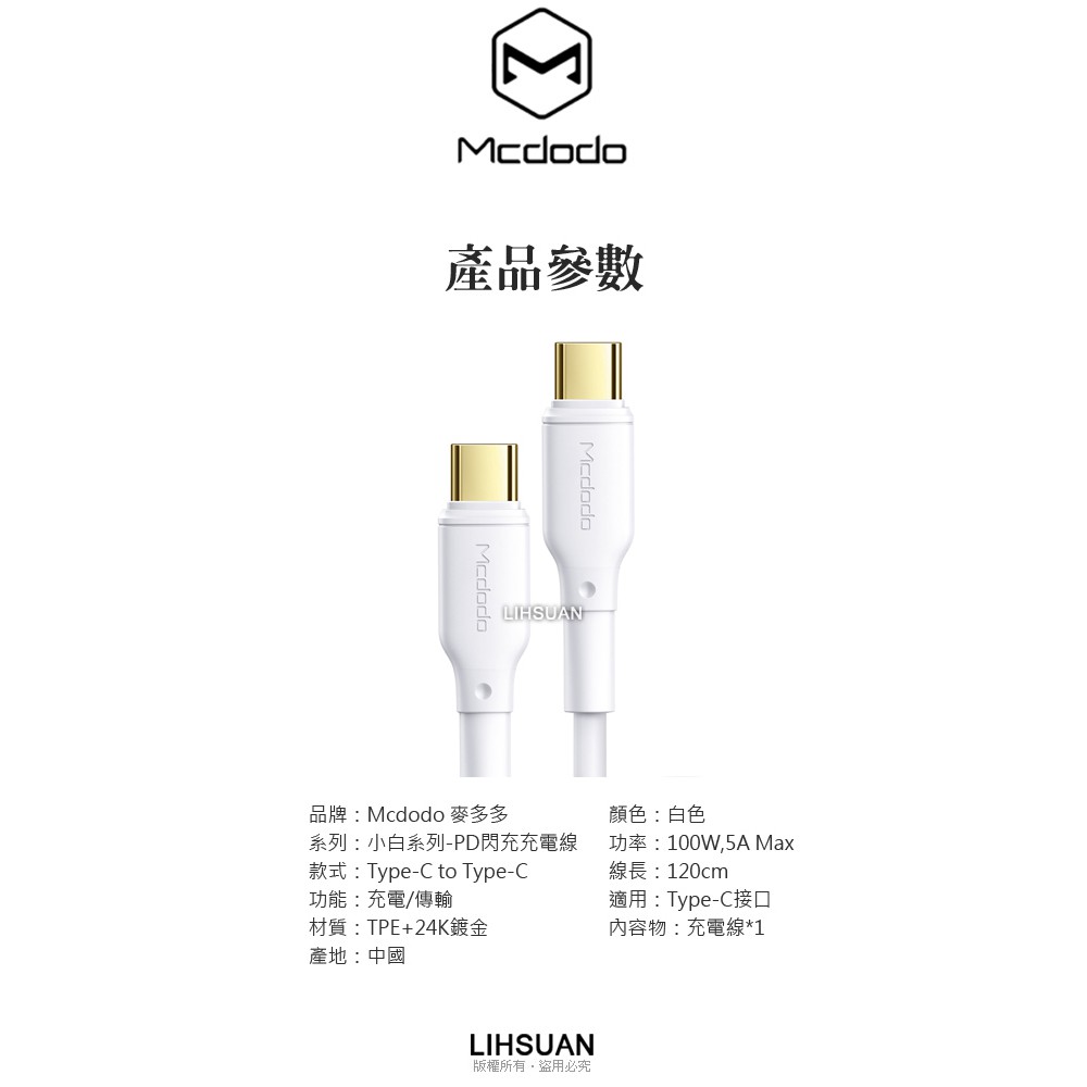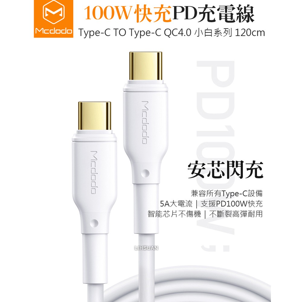 Mcdodo 雙Type-C/PD充電線傳輸線快充線閃充線 QC4.0 100W 小白系列 120cm 麥多多