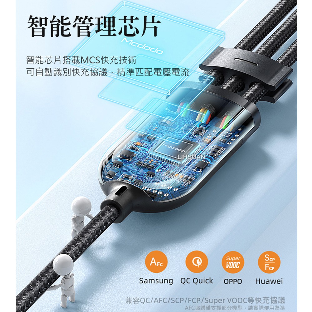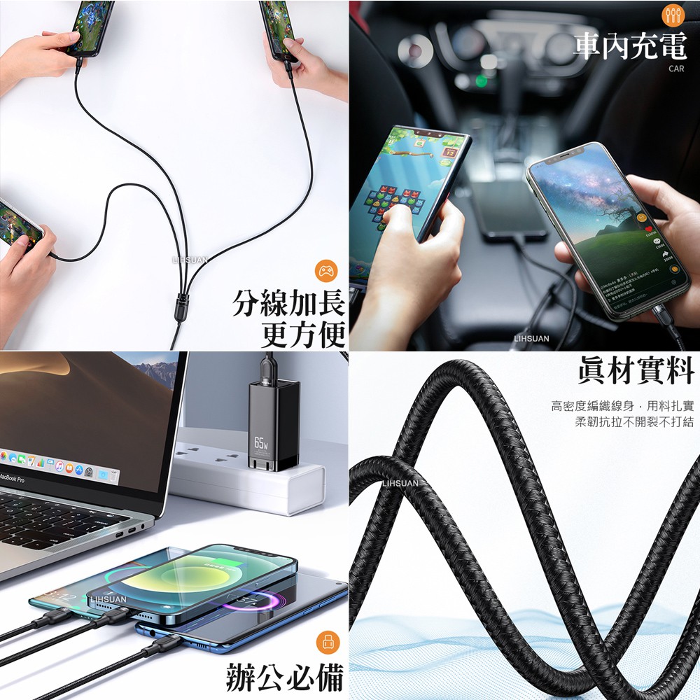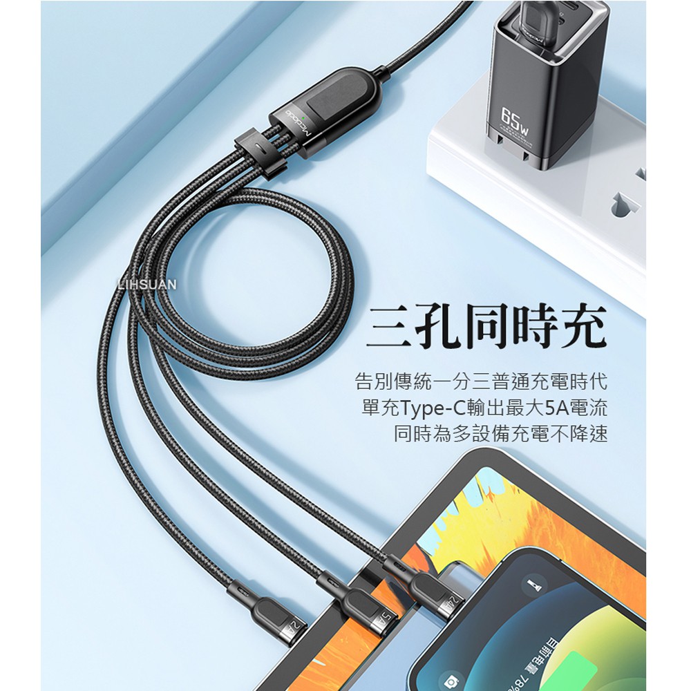 Mcdodo 一分三 Lightning/TypeC/安卓MicroUSB/iPhone充電線閃充線快充線 迅雷1.2M