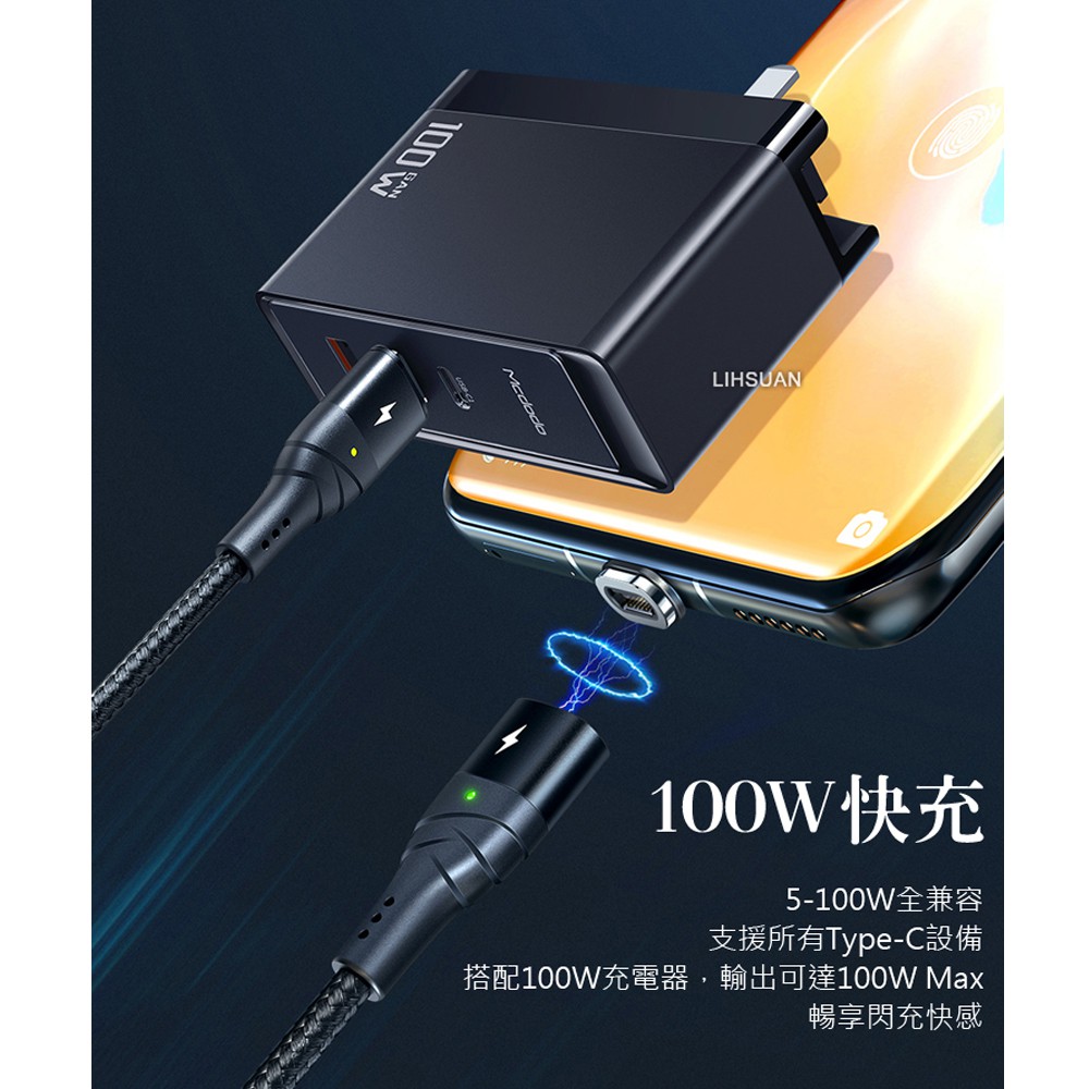Mcdodo 磁吸 雙Type-C/PD充電線傳輸線編織快充線閃充線 QC4.0 LED 清風系列 120cm 麥多多