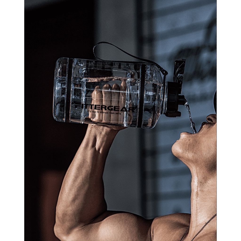 【FITTERGEAR】大水壺 黑/透明(運動水壺 耐高溫 大容量 便攜 男健身 可裝熱水 太空杯)