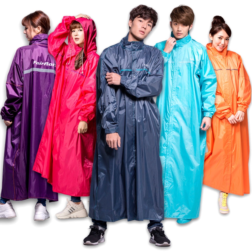 【飛銳 FairRain】馬卡龍時尚前開式雨衣 獨家撞色系列 一件式雨衣 帽子可拆