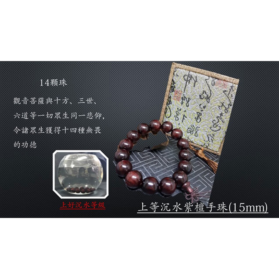 【菩提居】上等沉水紫檀手珠(15mm)|招財聚氣|避邪化煞|強化磁場|