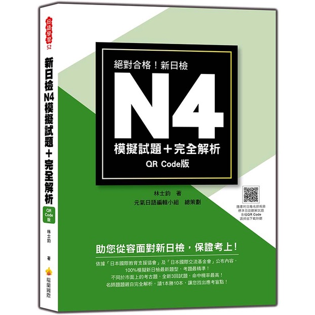 瑞蘭國際出版|新日檢N4模擬試題+完全解析 QR Code版(隨書附日籍名師親錄標準日語聽解試題音檔QR Code)