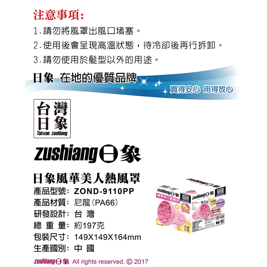 【日象】魔華美人熱風罩 ZOND-9110PP 烘捲/烘直兩用 捲髮造型