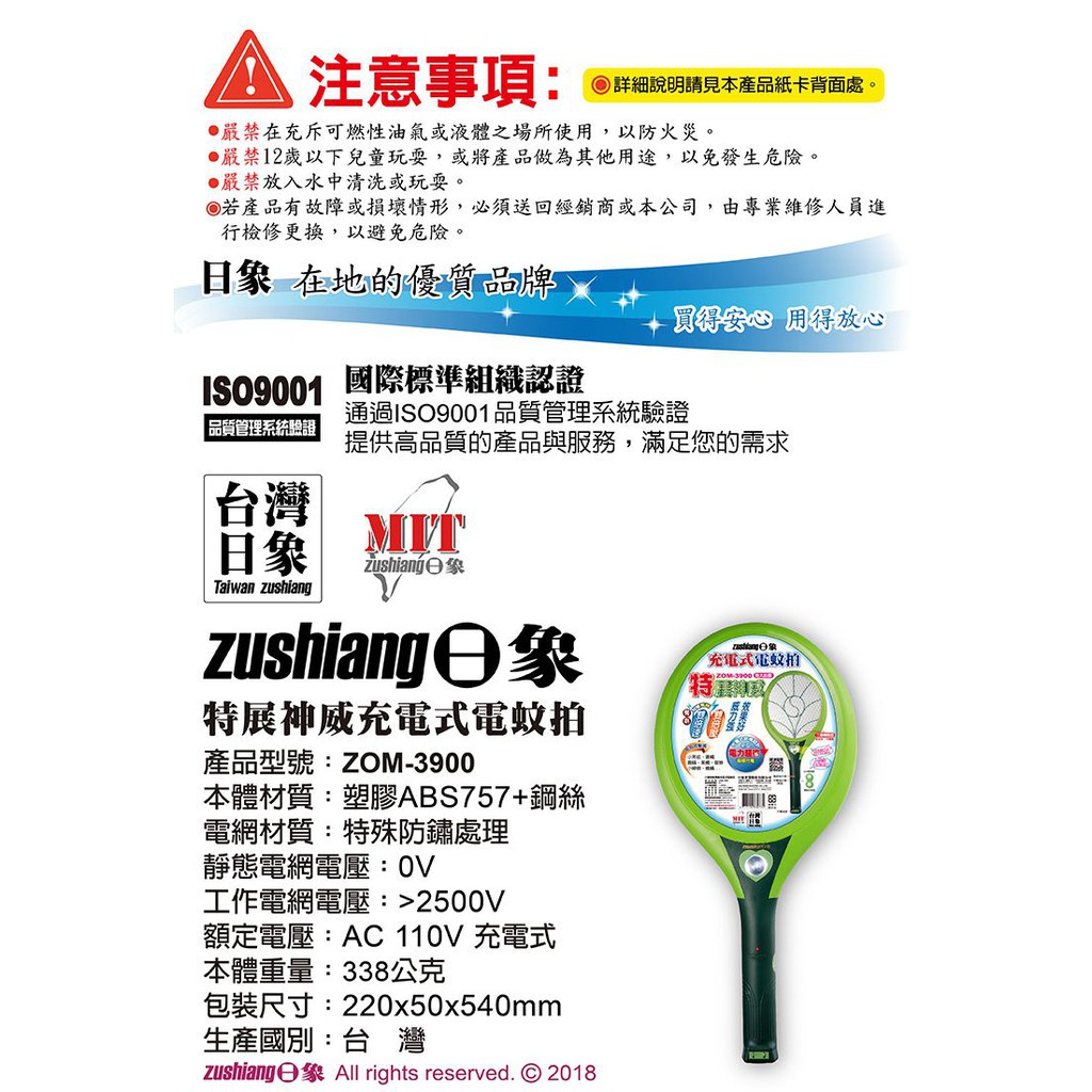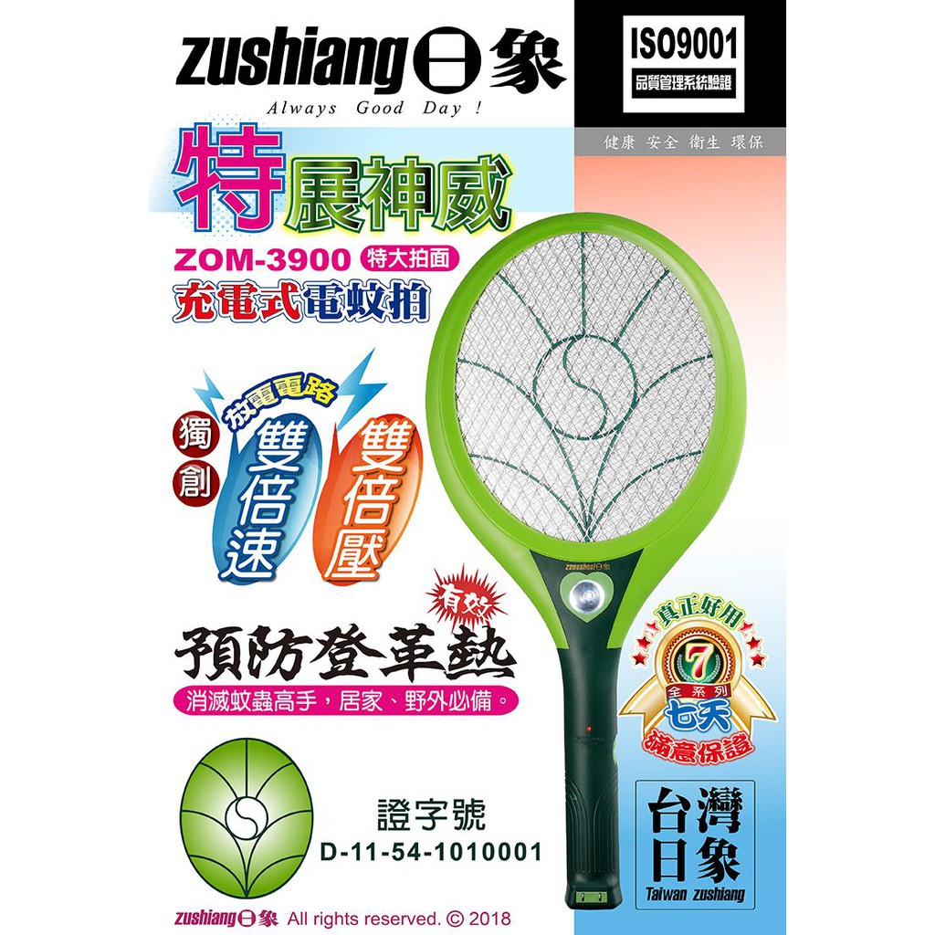 【日象】特展神威電蚊拍(充電式) ZOM-3900 捕蚊拍 特大拍面 捕蚊神器 物理滅蚊