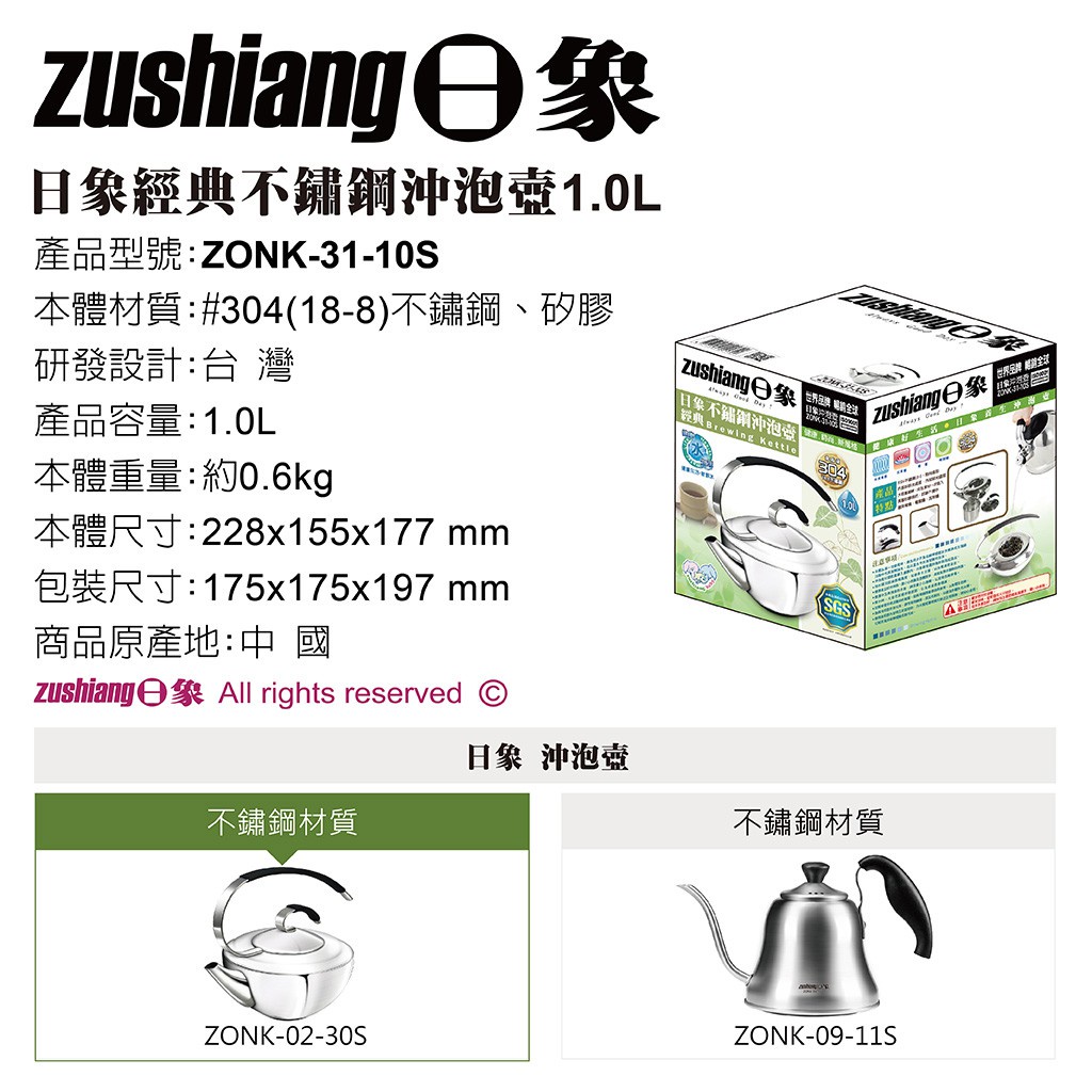 【日象】經典不鏽鋼沖泡壺(1.0L) ZONK-31-10S 泡茶壺 傳統泡茶 頂級工藝茶壺