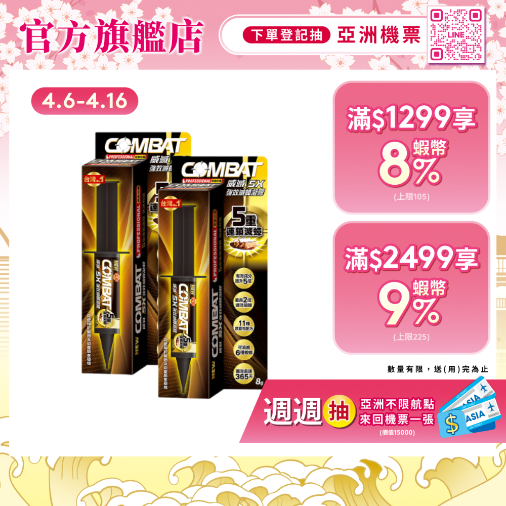 【Combat威滅】 5X強效滅蟑凝膠 8g 1條/2條/3條(除蟑螂/蟑螂藥/殺蟲劑/殺蟑/殺蟲)