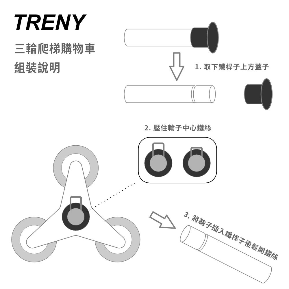 三輪爬梯購物車-直紋黑 菜籃車 手推車 購物車 行李車 載物車 2541