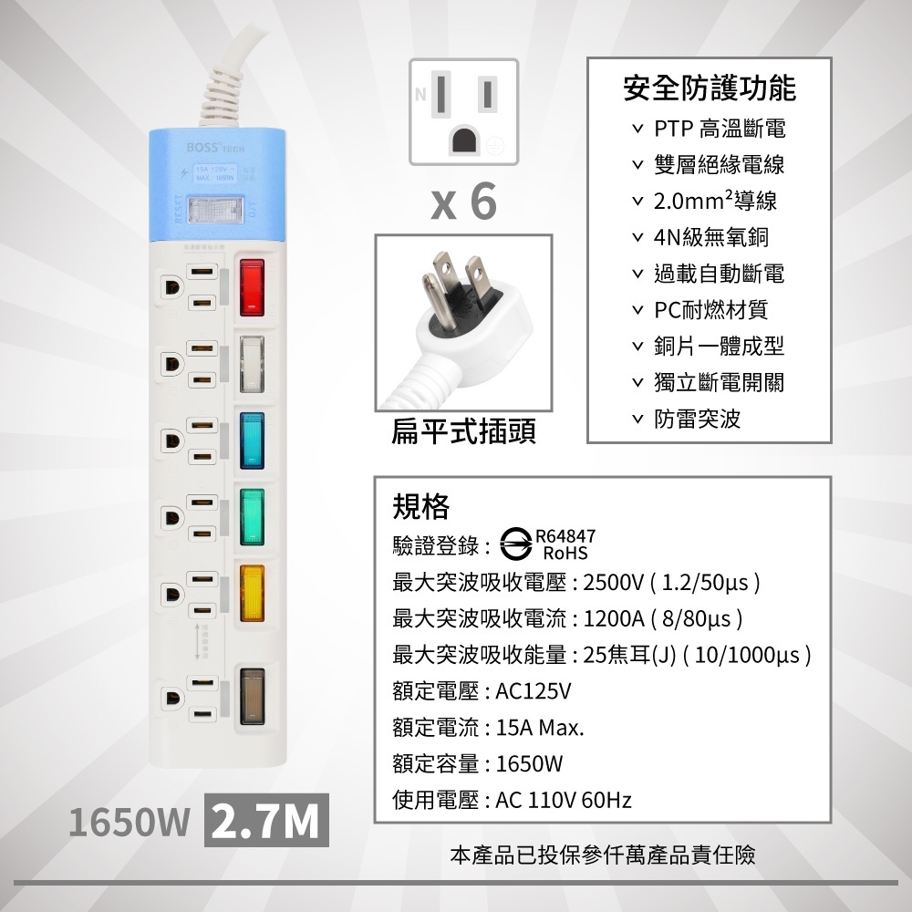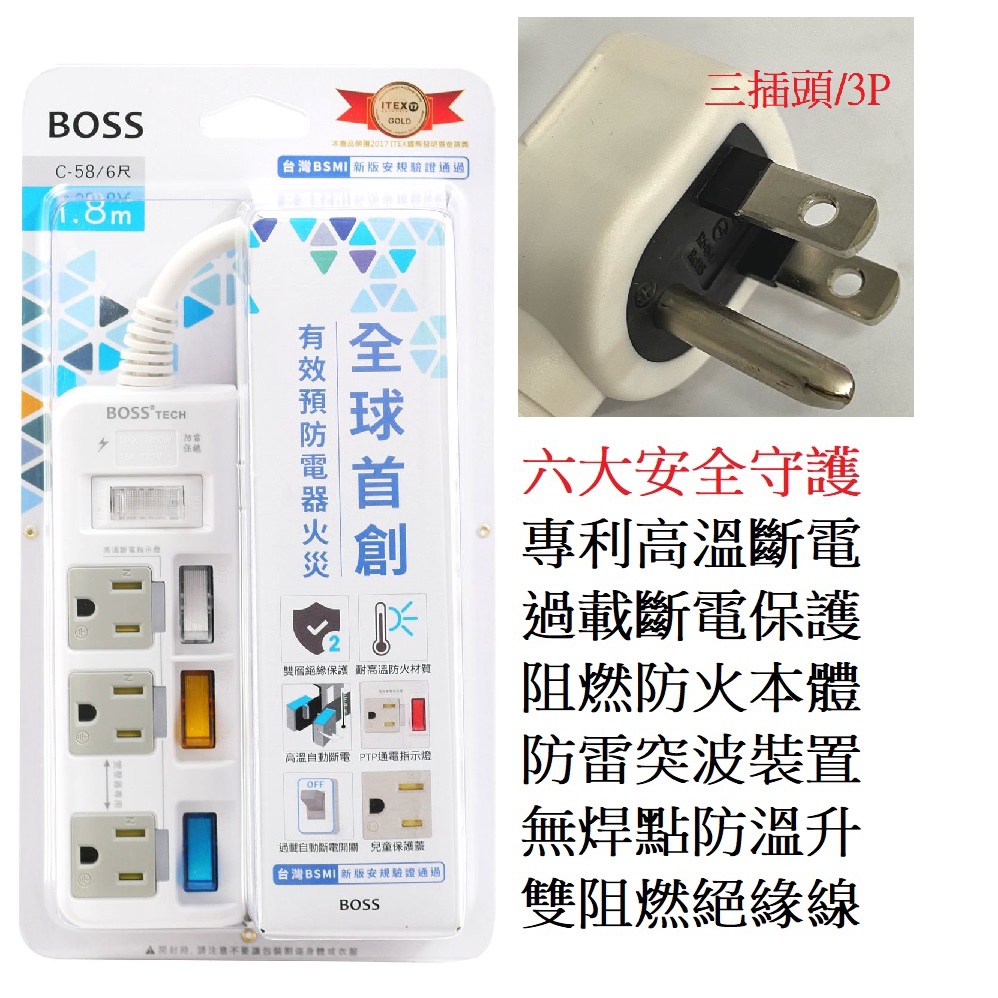 延長線安全高溫斷電預防火災7開6插5開4插3P高溫斷電延長線 1.8米 2.7米