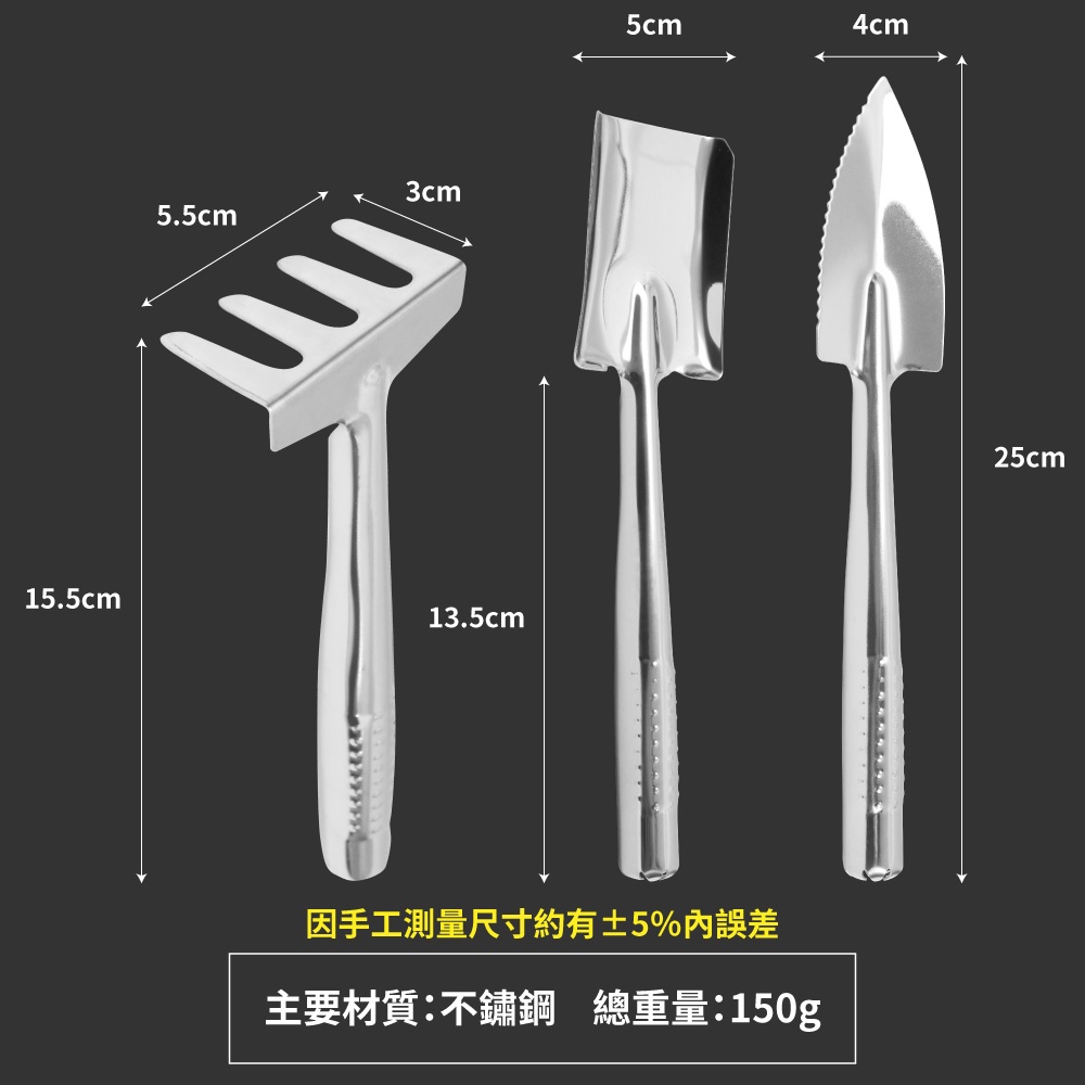 TRENY 花鏟 花耙 園藝工具 種花 鏟土 不鏽鋼 鐵製 耙子多肉迷你盆園藝花鏟三件組