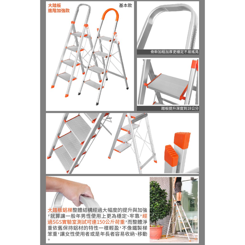 TRENY 鋁梯鐵梯梯子踏梯 鐵梯安全梯荷重大踏板系列鋁製扶手梯