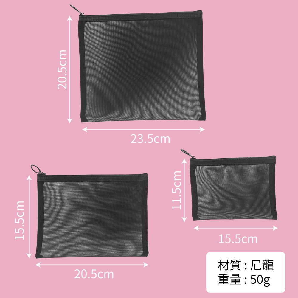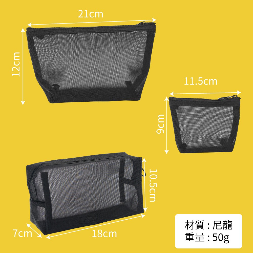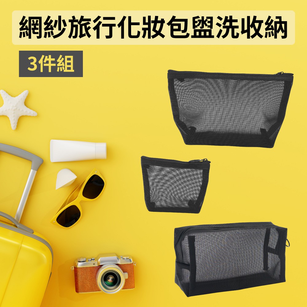 網紗旅行化妝包盥洗收納-3件組
