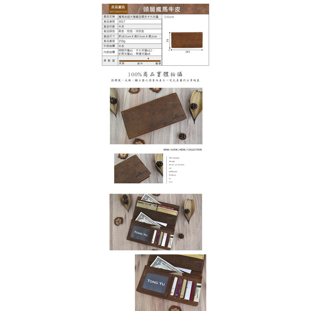 【彤祐TongYu】瘋馬皮超大隱藏空多卡男長夾 真皮牛皮瘋馬皮零錢包男用皮夾錢包