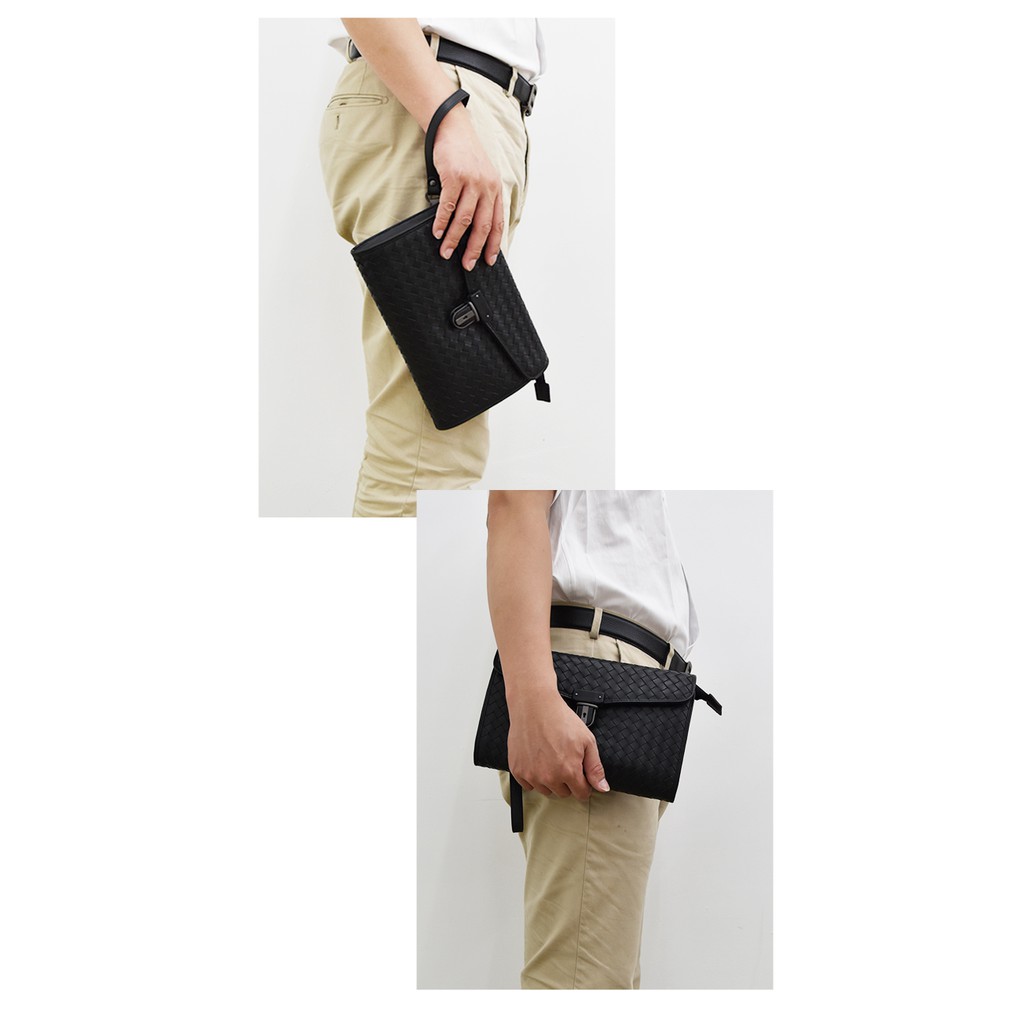 【彤祐TongYu】熱銷款羊皮編織大容量鎖扣手拿包 真皮羊皮男用女用多功能超大空間手拿包商務包
