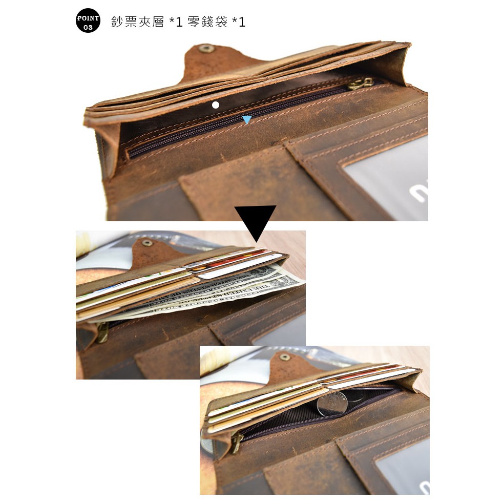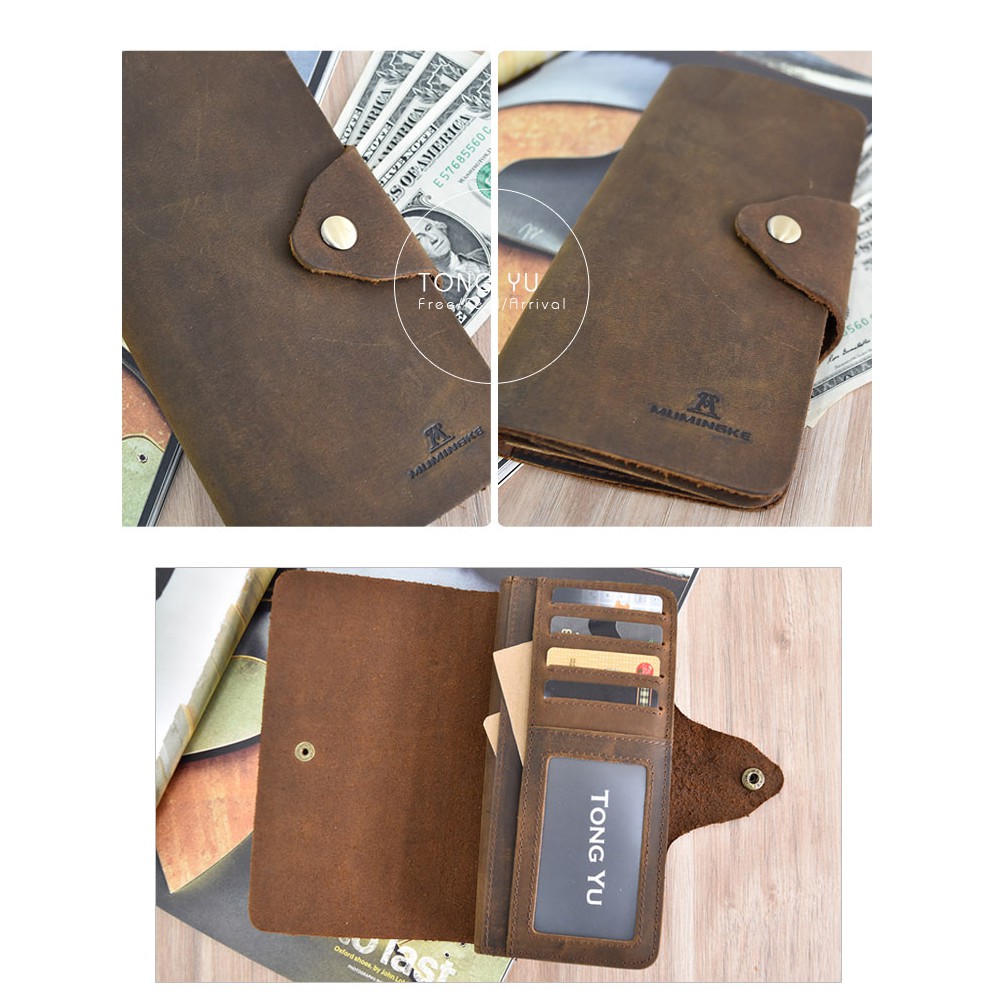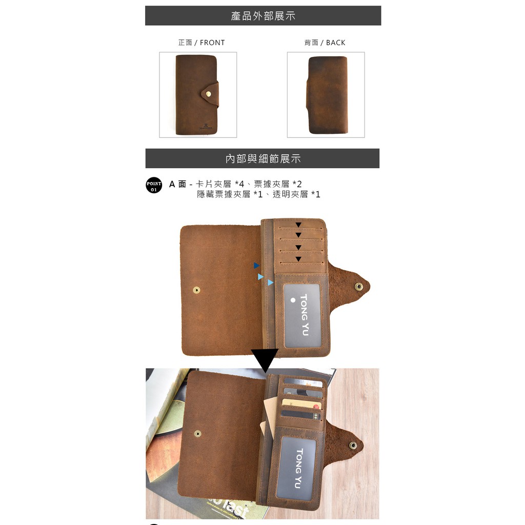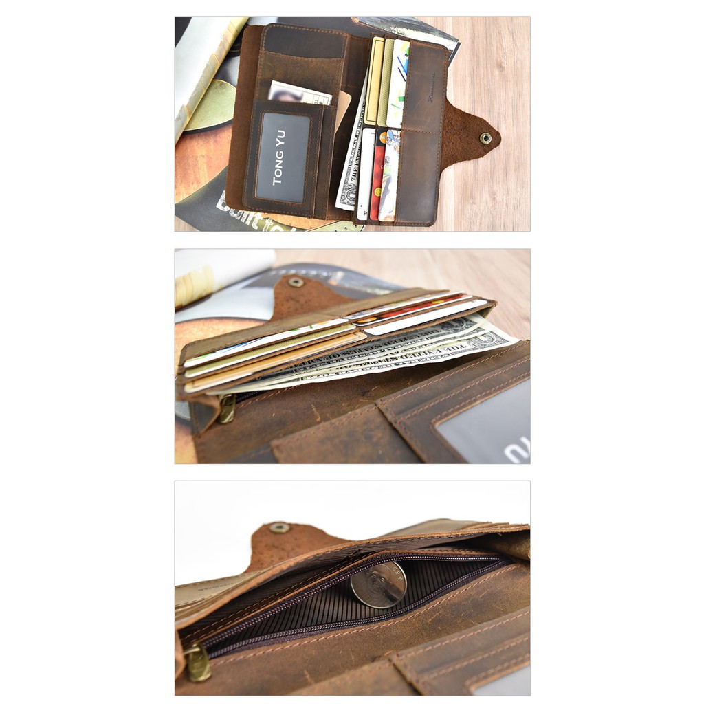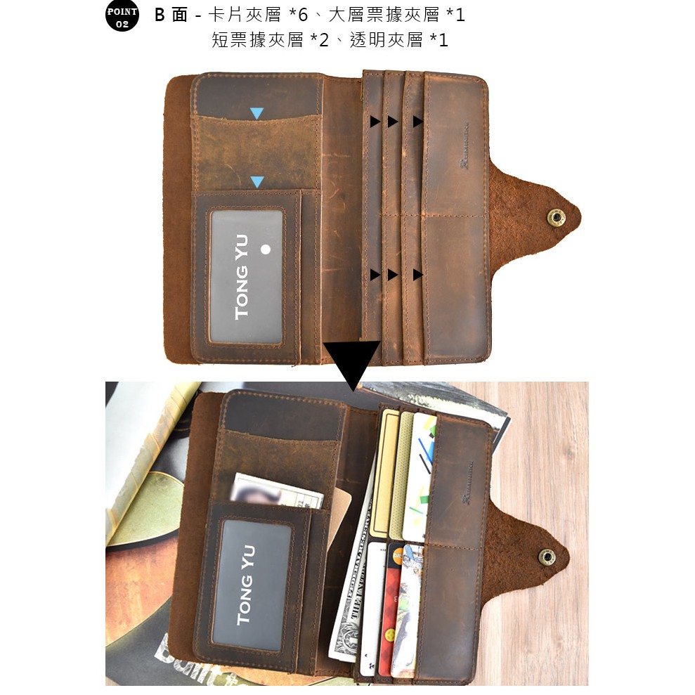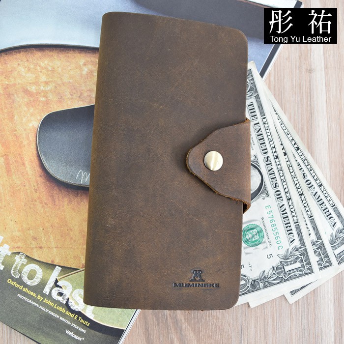 【彤祐TongYu】翻頁式單釦多卡位大容量零錢袋真皮牛皮瘋馬皮男長夾錢包