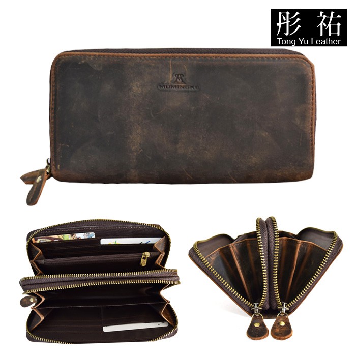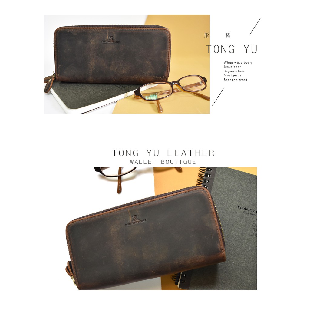 【彤祐TongYu】雙拉鍊超大容量多卡手拿包長夾 真皮牛皮男用女用長夾錢包