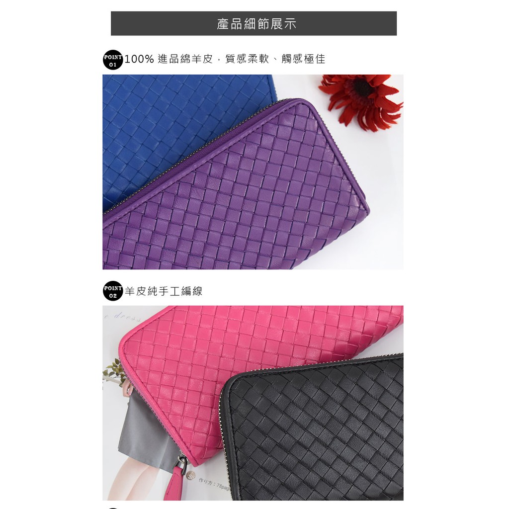 【彤祐TongYu】熱銷款手工編織華麗奢華拉鍊女夾 真皮羊皮零錢包女長夾女用長夾羊皮皮夾羊皮長夾女包手拿包手機包錢包
