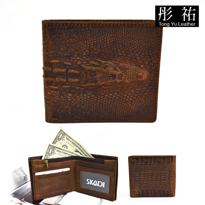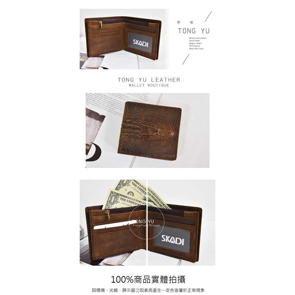 【彤祐TongYu】個性鱷魚頭加厚大空間鈔票二折男夾 真皮牛皮瘋馬皮零錢包男用短夾牛皮皮夾牛皮短夾男包錢包男短夾