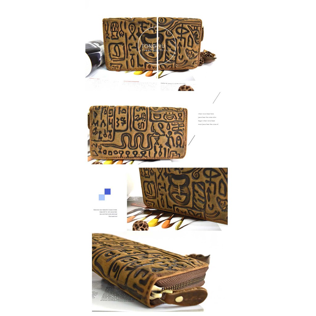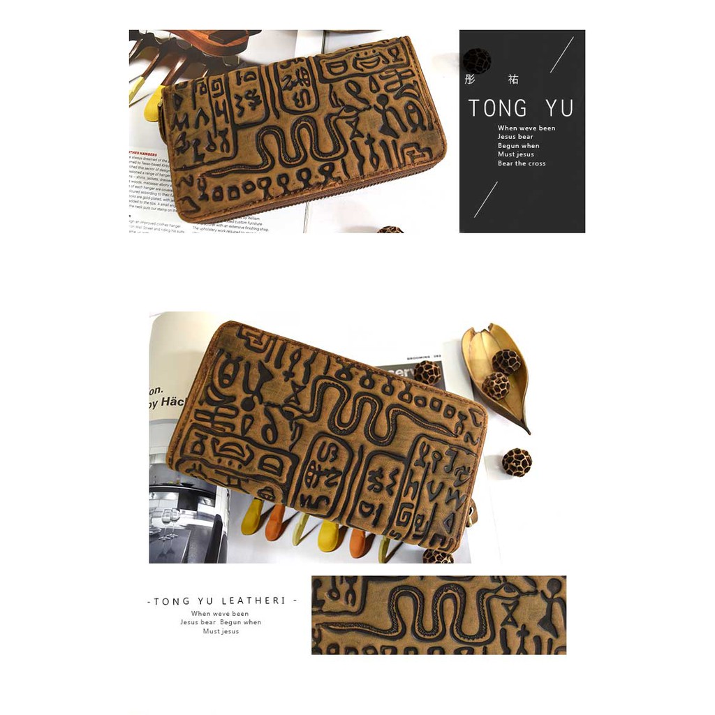 【彤祐TongYu】多功能復古壓甲骨文風琴摺式拉鍊男夾 真皮牛皮瘋馬皮零錢包男用長夾牛皮皮夾牛皮長夾男長夾男包男夾