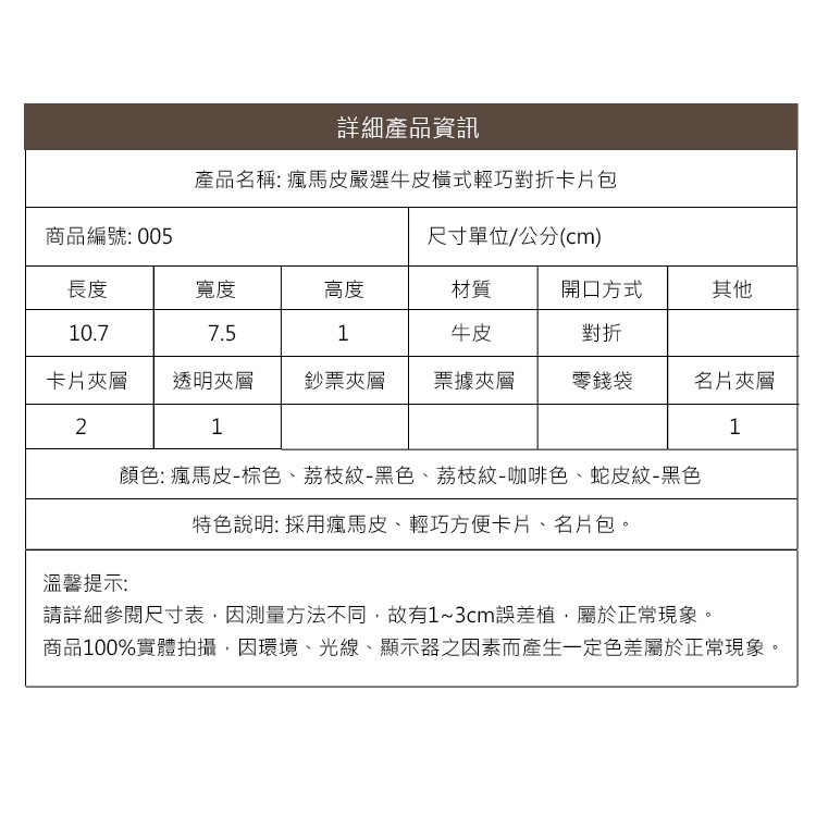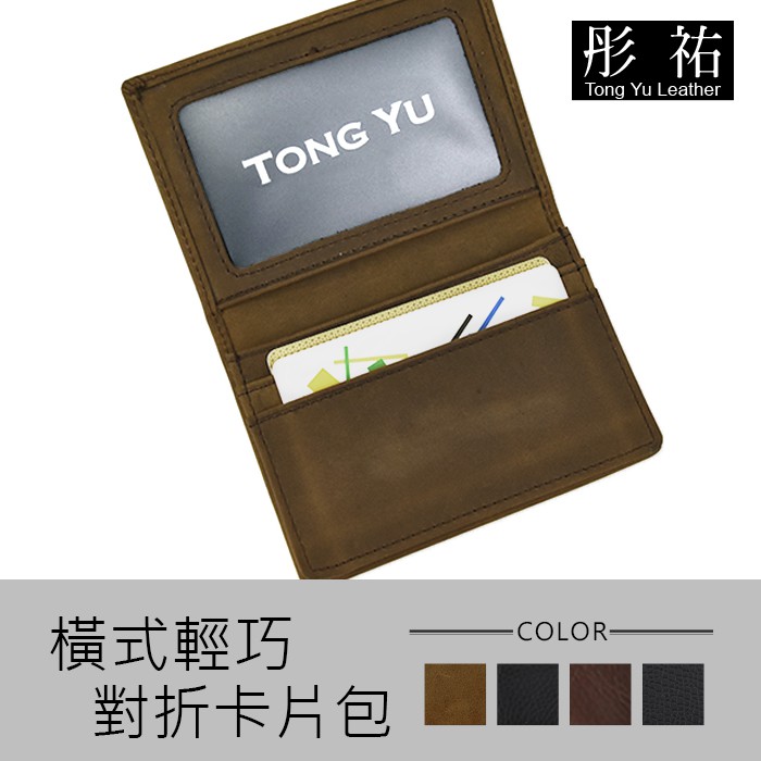 嚴選牛皮橫式輕巧對折卡片包名片夾 【彤祐TongYu】