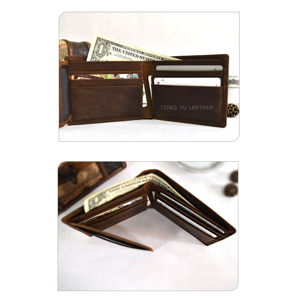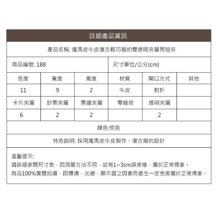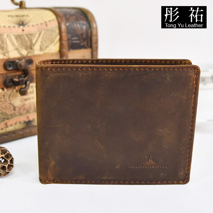 【彤祐TongYu】迷你款復古輕巧簡約雙透明夾層 2折真皮牛皮瘋馬皮男用短夾牛皮皮夾牛皮短夾男短夾男包男夾