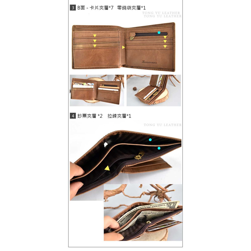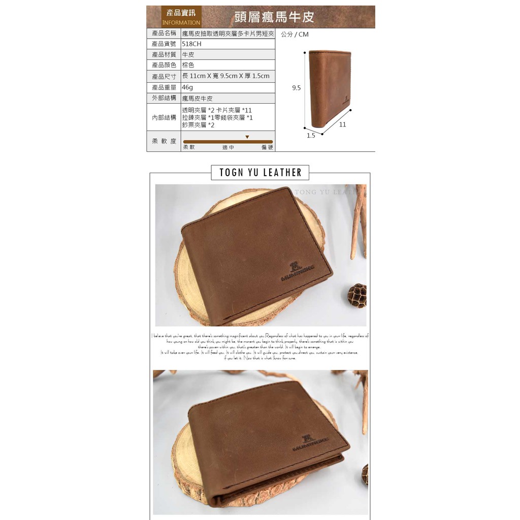 【彤祐TongYu】瘋馬皮抽取透明夾層多卡片男短夾真皮牛皮瘋馬皮零錢包男短夾男用短夾牛皮皮夾牛皮短夾男短夾男包男夾