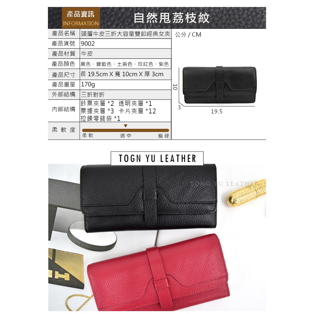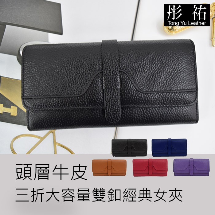 【彤祐TongYu】 頭層牛皮三折大容量雙釦經典女真皮牛皮零錢包女長夾女用長夾牛皮皮夾牛皮長夾女長夾女包手拿包手機包女夾