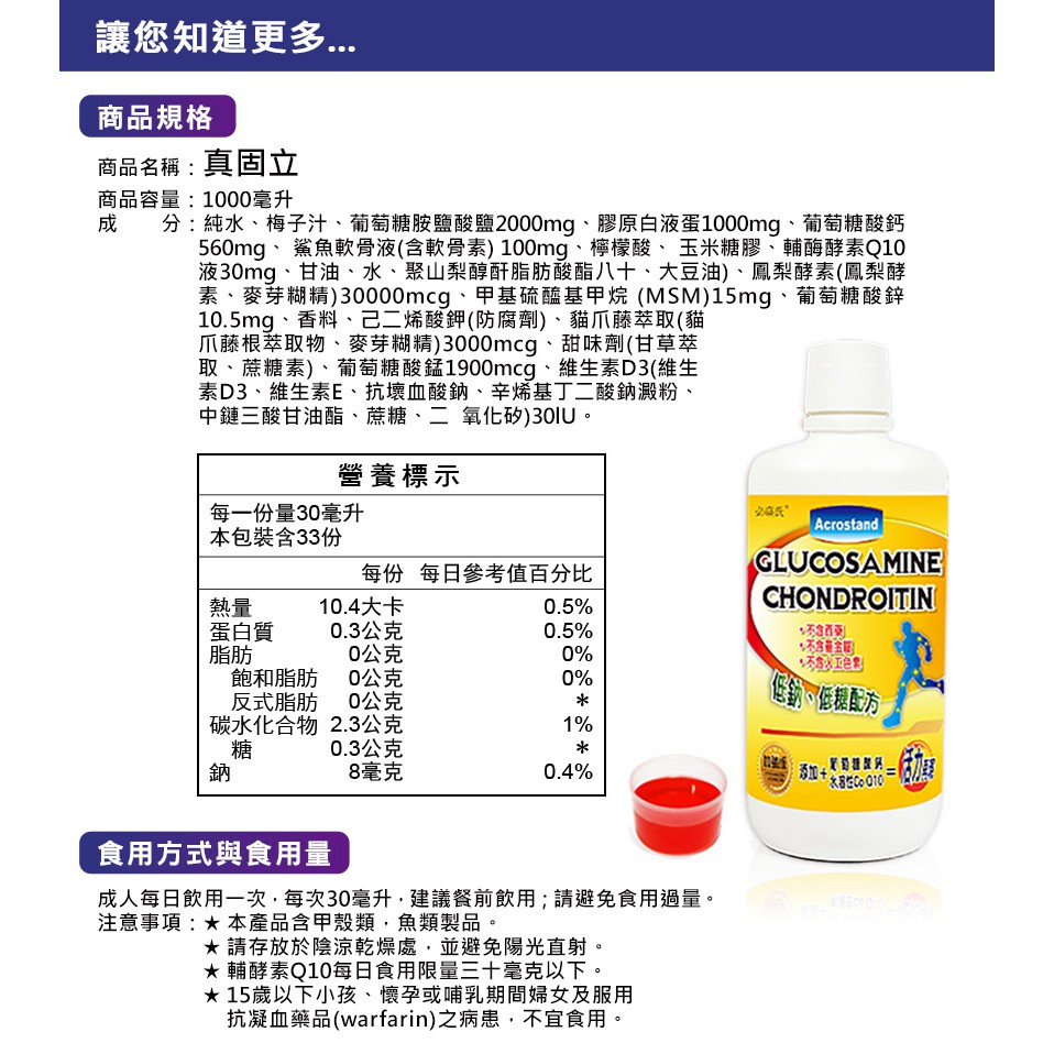草本之家真固立葡萄糖胺液(1000ml/瓶)鈣 鯊魚軟骨 Q10 MSM 鋅 維生素 維他命 行動力 保健食品 營養品