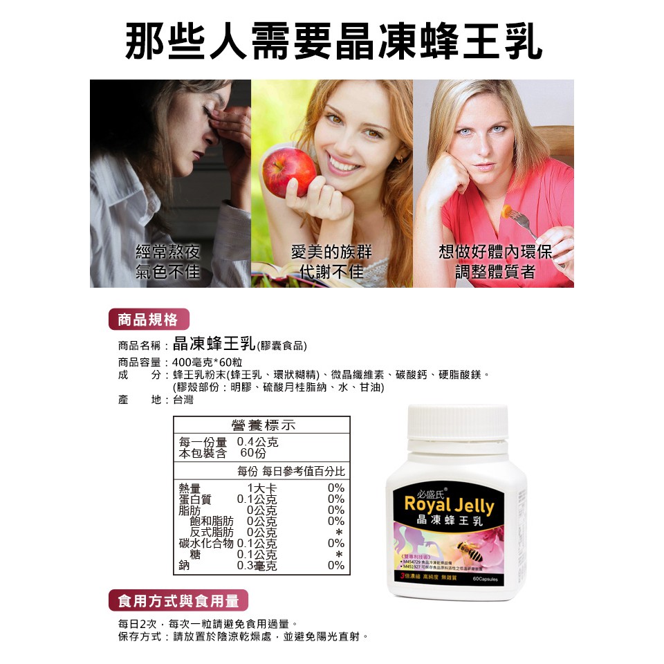 草本之家 晶凍蜂王乳(60粒/瓶) 必盛氏 原廠 台灣 養顏美容 蜂王乳 晶凍 青春美麗 蜂 葵稀酸 保健食品 營養品