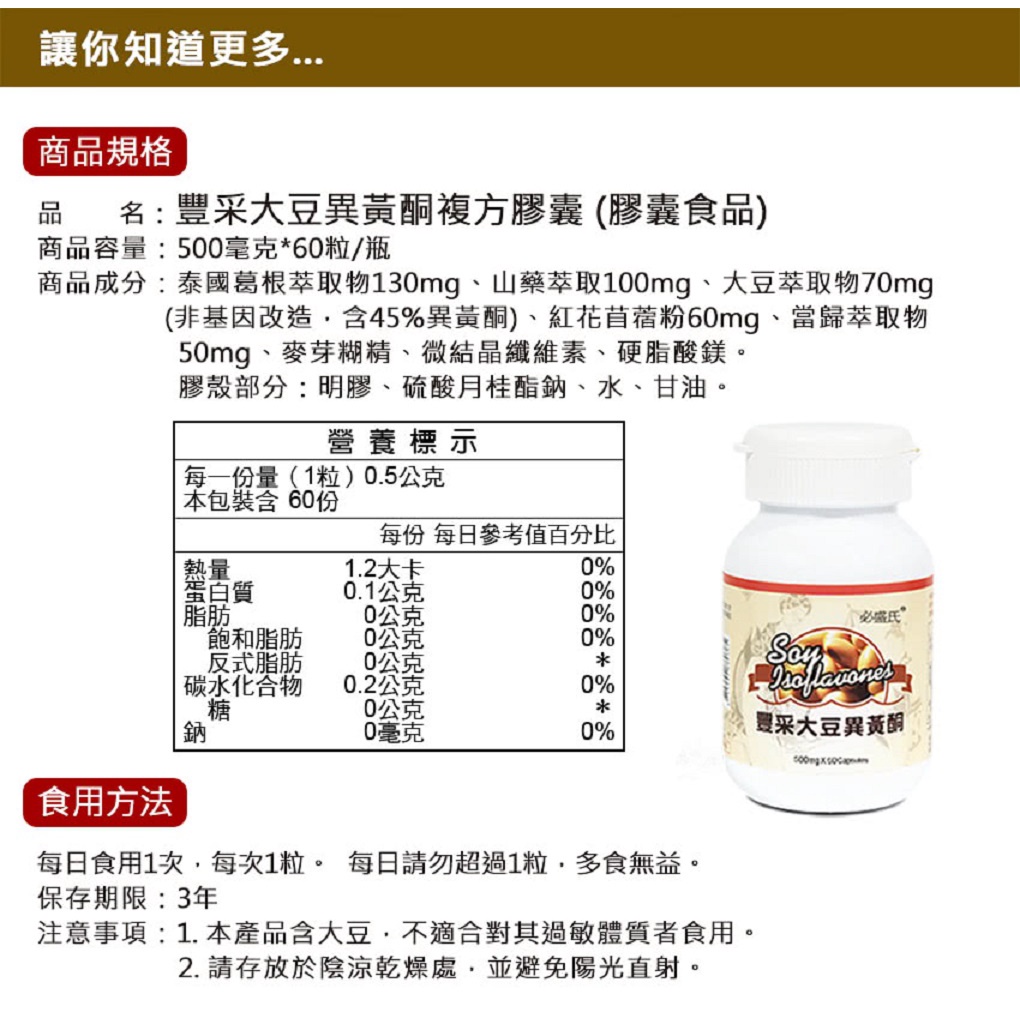 草本之家 豐采大豆異黃酮(60粒/瓶)必盛氏 養顏美容 泰國葛根 山藥 紅花苜蓿 當歸 女性 銀髮 保健食品 營養品