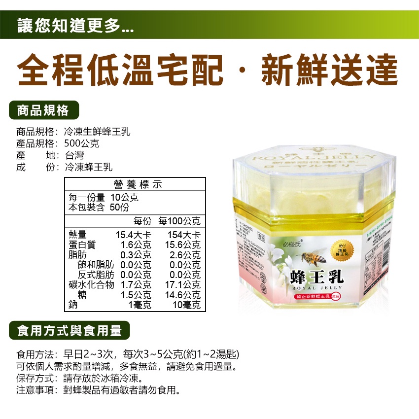 草本之家 冷凍蜂王漿(500克/盒)蜂王乳 新鮮 養顏美容 青春美麗 好吸收 二日乳 蜂王漿 保健食品 營養品