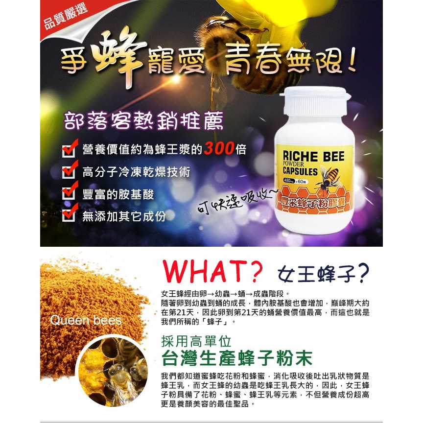 草本之家 豐采蜂子粉膠囊(60粒/瓶)養顏美容 晶凍 青春美麗 蜂蛹粉 必盛氏 保健食品 營養品 營養補給