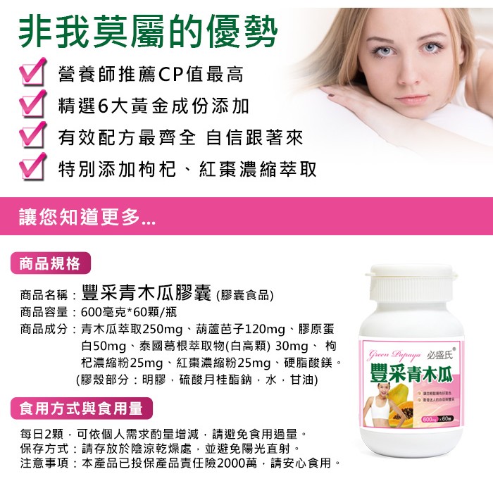 草本之家 豐采青木瓜(60粒/瓶)泰國白高顆 葛根 青木瓜 葫蘆芭子 膠原蛋白 枸杞 紅棗 青春美麗 保健食品 營養品
