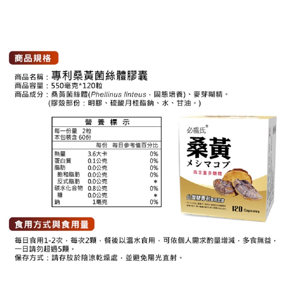 草本之家 專利桑黃菌絲體(120粒/盒)桑黃菇 必盛氏 原廠 病後調養 滋補強身 增強體力 多醣體 三帖類 新包裝