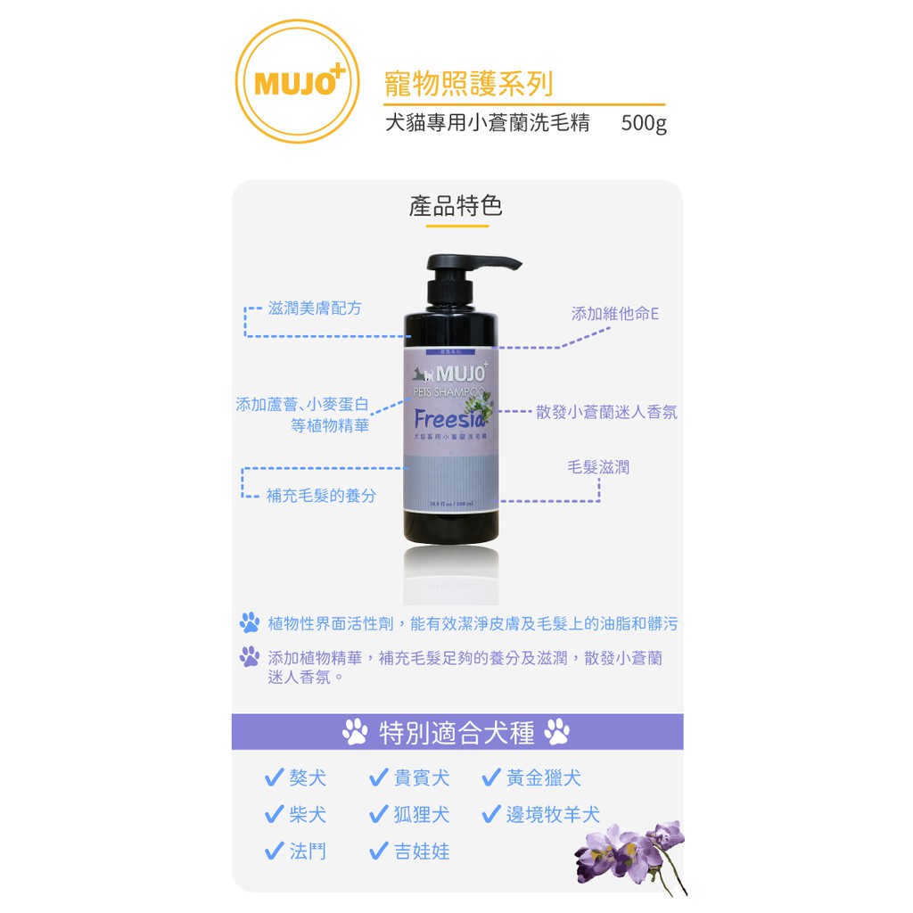 【木酢家】犬貓專用小蒼蘭洗毛精500g|滋潤美膚|優雅放鬆|精油香氛|低敏|抑制體味|溫和舒緩|保濕護膚|皮毛保健