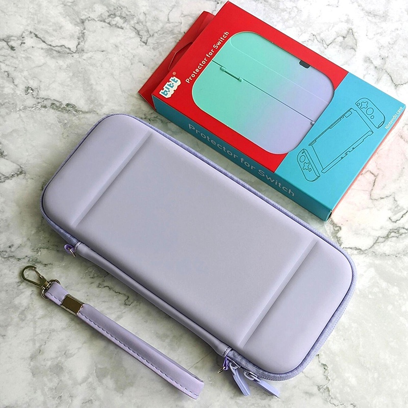 ES副廠 Switch OLED 漸層保護殼 (多色) 薄款絨布PU收納包 矽膠噴油親膚殼 含10遊戲卡槽收納
