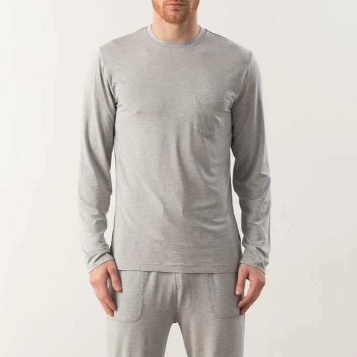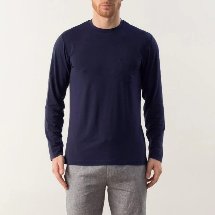 Tani 94%天絲 男長袖 素色 圓領 T恤 39562