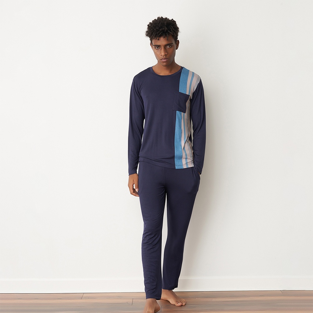 TANI 男性 休閒 長袖 圓領 口袋T 39717