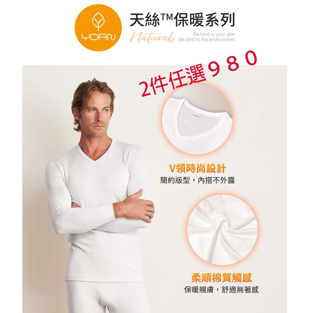 YORN 天絲+棉 男性 V領 長袖保暖衣 2件組 58%棉 38%天絲 官方平台 Y79739-2