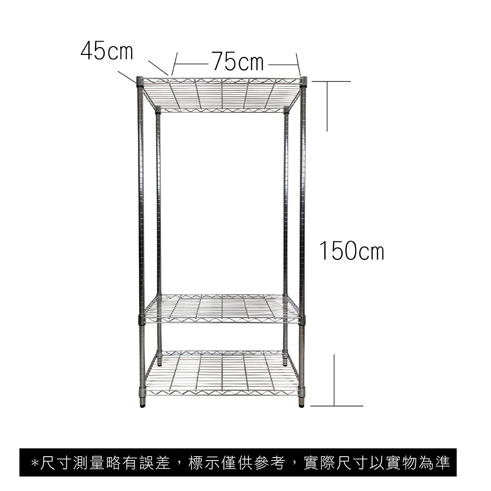 【我塑我形】75x45x150cm 鐵力士三層收納架 台灣製 單層耐重100kg 鍍鉻鐵架 層架