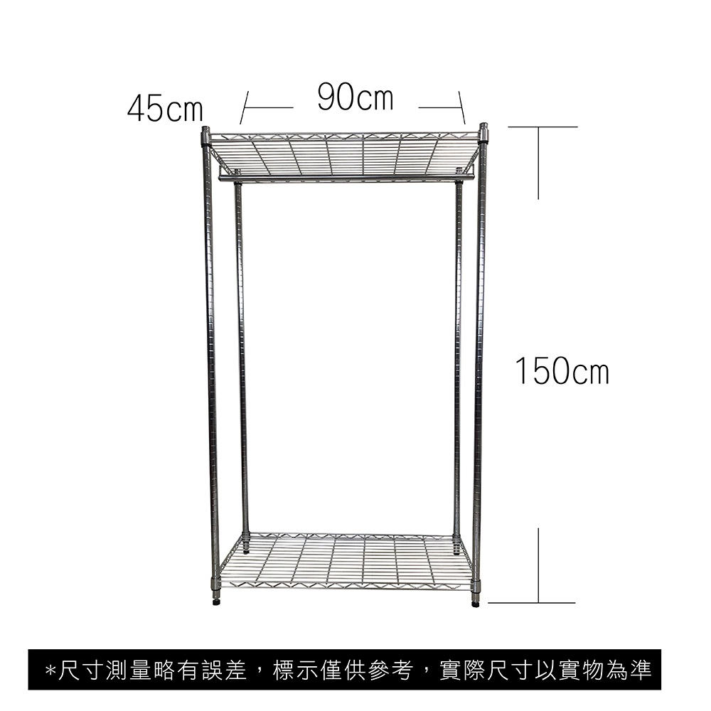 【我塑我形】90x45x150cm 鐵力士二層收納架-含衣桿 台灣製 單層耐重100kg 鍍鉻層架