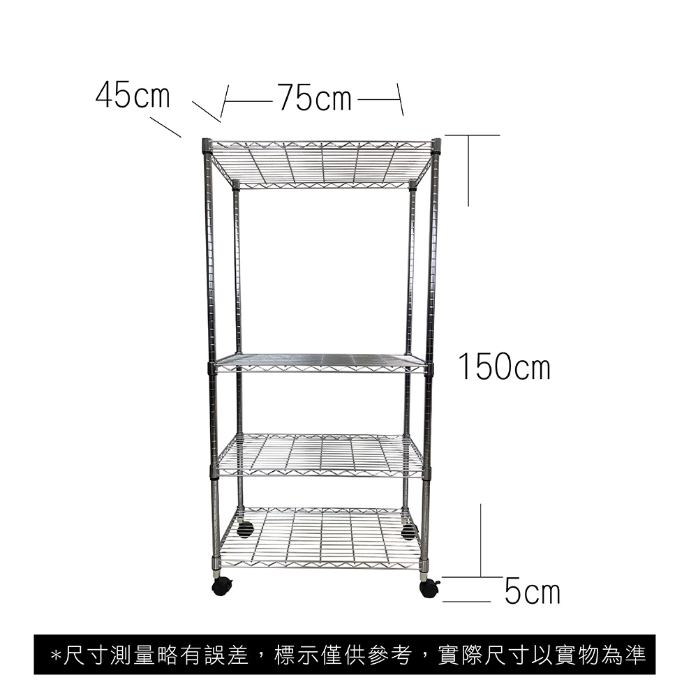 【我塑我形】75x45x155cm 鐵力士四層收納架+輪 台灣製 單層耐重100kg 移動式鍍鉻層架