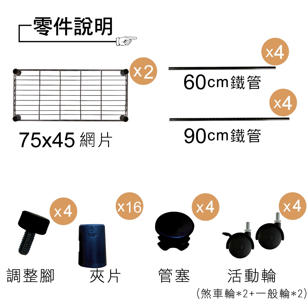 【我塑我形】75x45x155cm 鐵力士二層收納架 台灣製 移動式鍍鉻層架