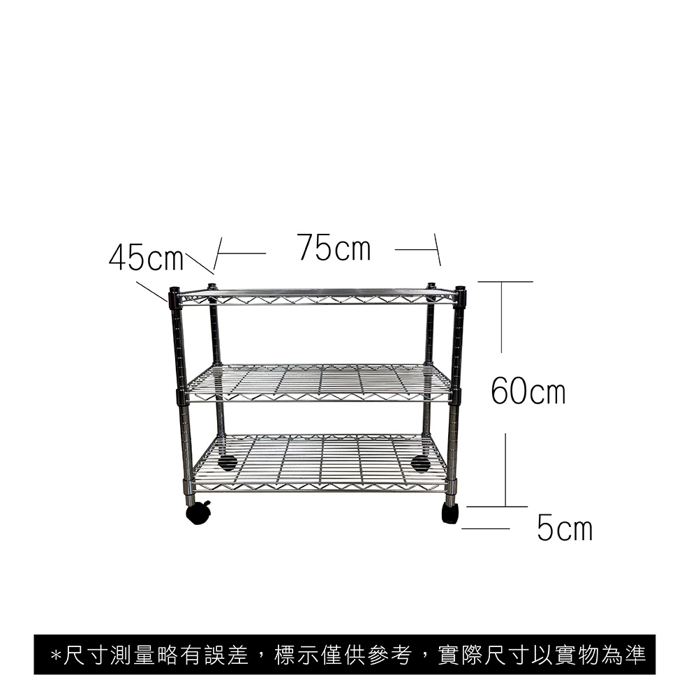 【我塑我形】75x45x65cm 鐵力士三層收納架+輪 台灣製 單層耐重100kg 移動式鍍鉻層架