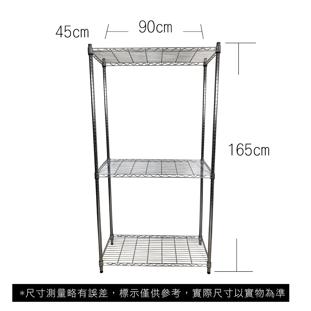 【我塑我形】90x45x165cm 鐵力士三層收納架 台灣製 單層耐重100kg 鍍鉻鐵架 層架