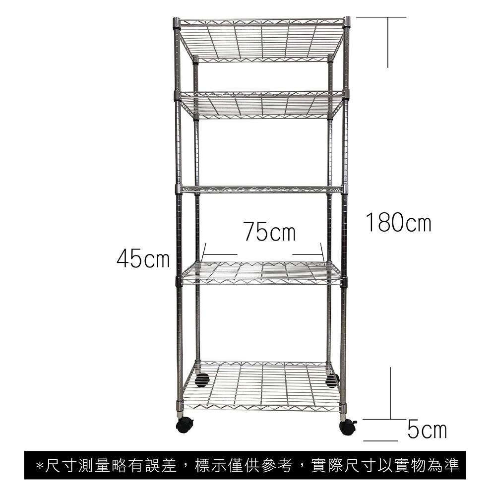 【我塑我形】75x45x185cm 鐵力士五層收納架+輪 台灣製 單層耐重100kg 移動式鍍鉻層架